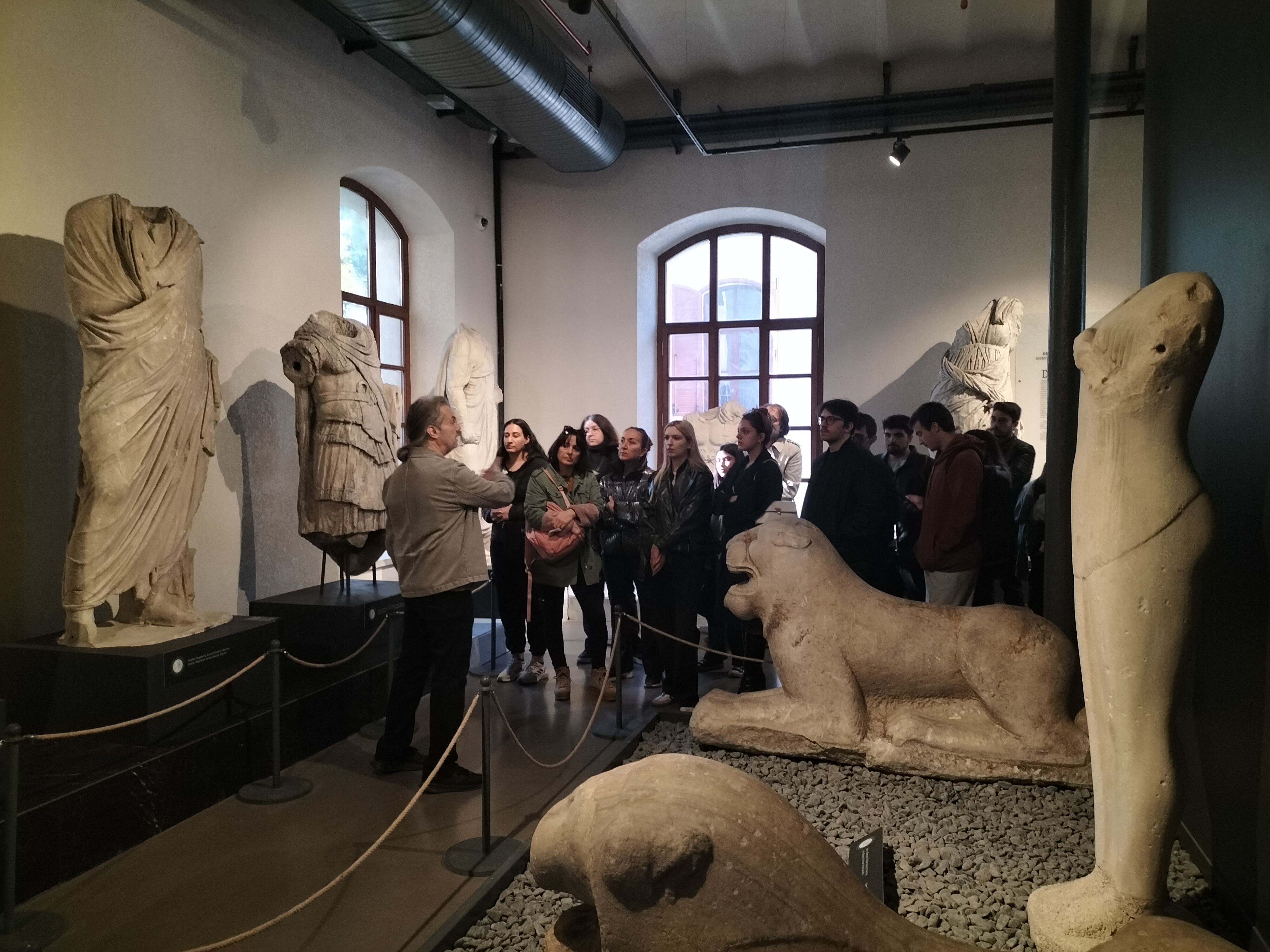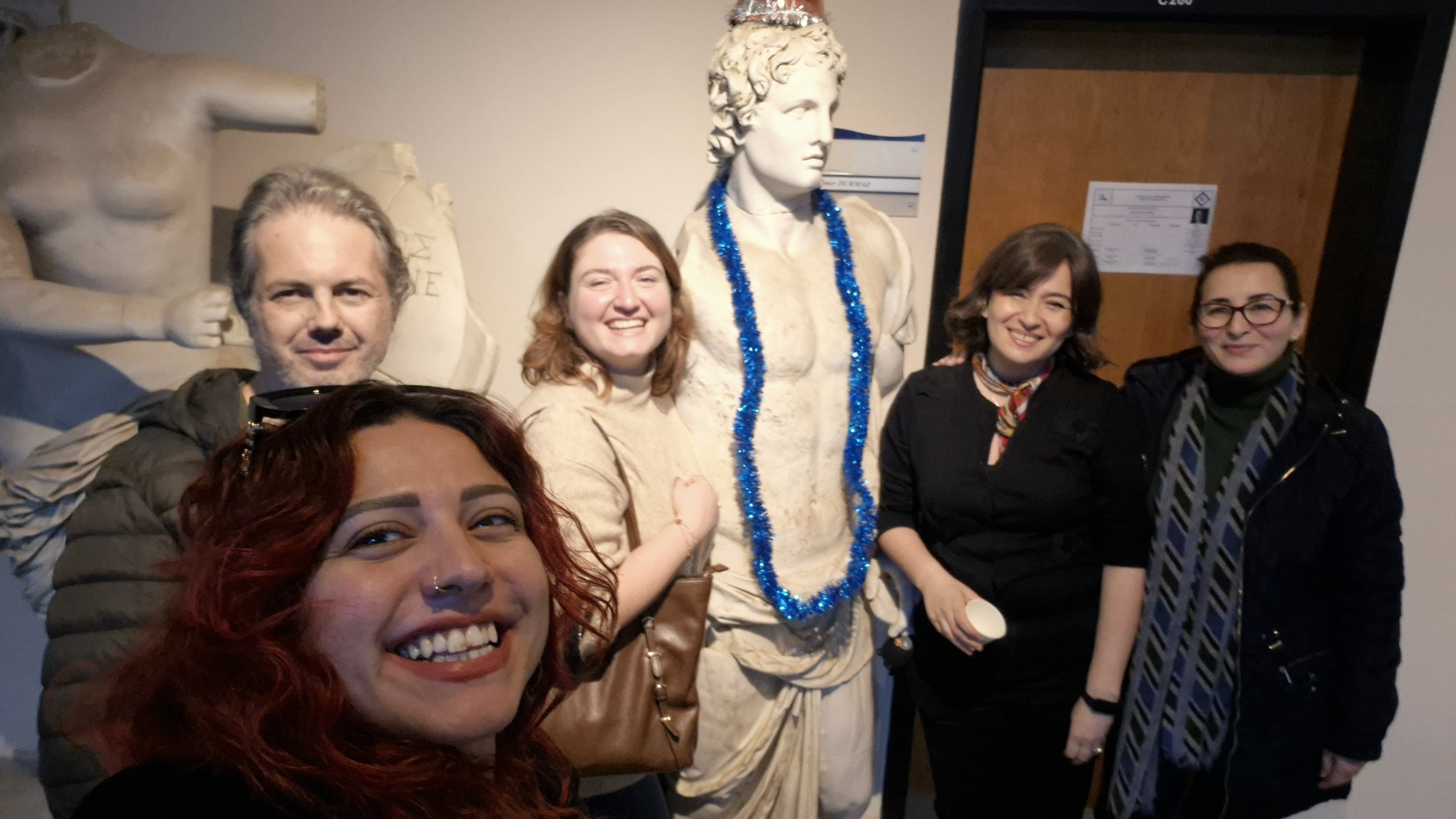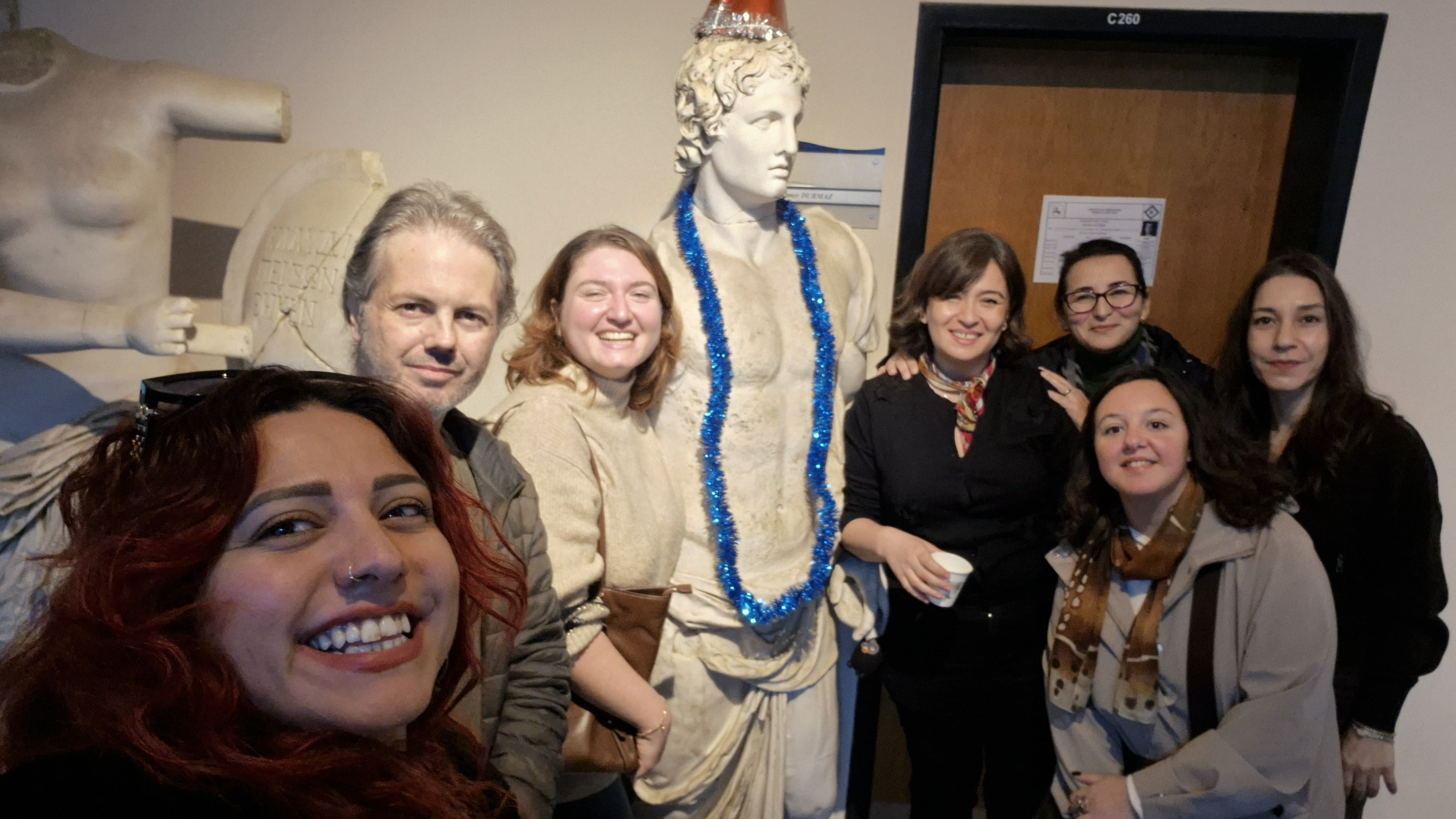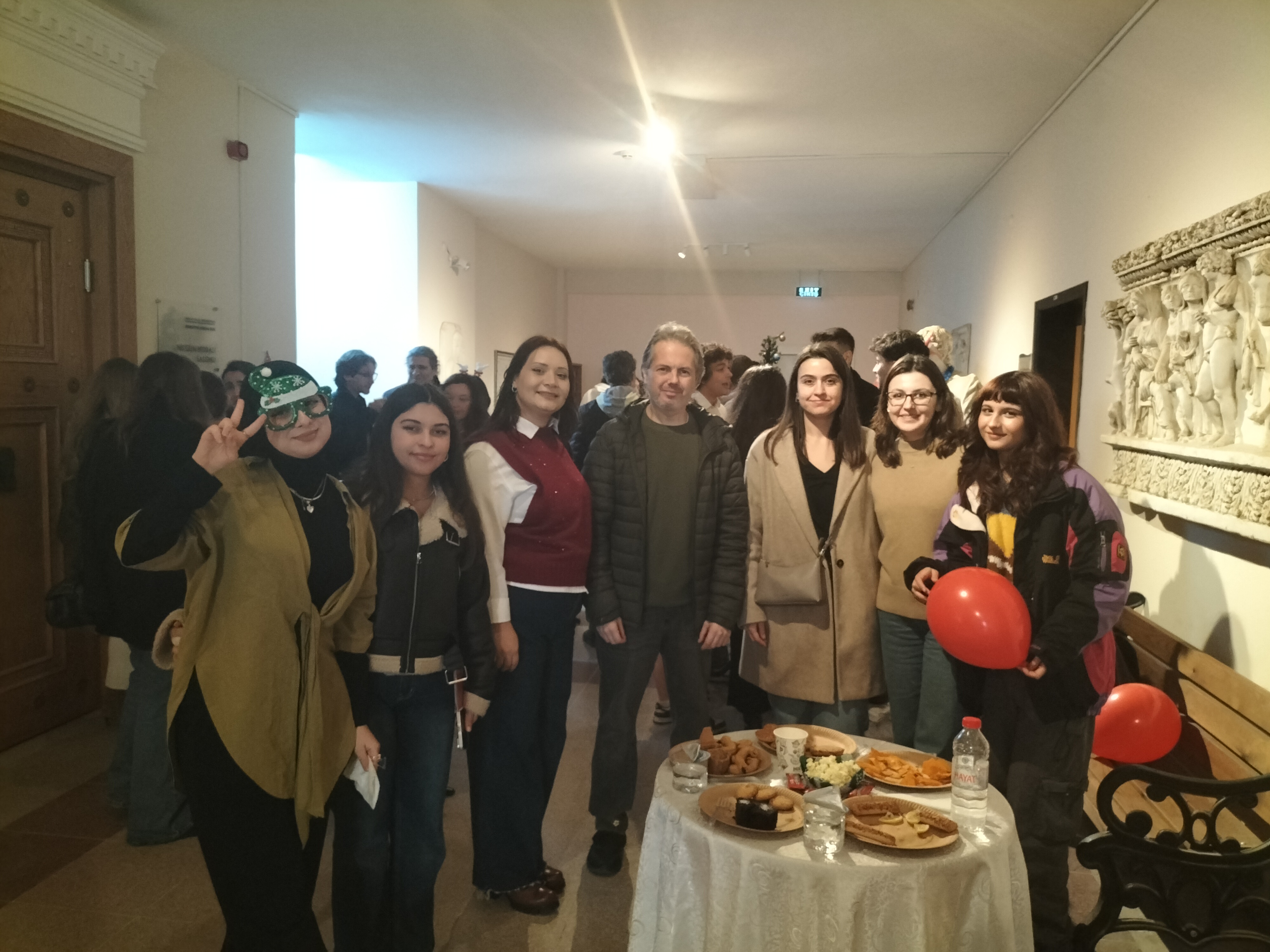 19.11.2025 tarihinde Müzecilik Bölümü, Mektebim Koleji Bornova Öğrencileri ve Öğretmenleri tarafından ziyaret edildi. Okulun proje takımında yer alan bir öğrenci grubu tarafından hazırlanan arkeoloji temalı robotik projeyle ilgili olarak Bölüm Hocalarımıza sorular soruldu. Arkeolojik kazılarda, kazı sürecine yardımcı olması amacıyla tasarladıkları robotun işlevselliği ve kazıya katkılarıyla ilgili soruları yanıtlayan Hocalarımız, konuya ilişkin önerilerde bulundu.